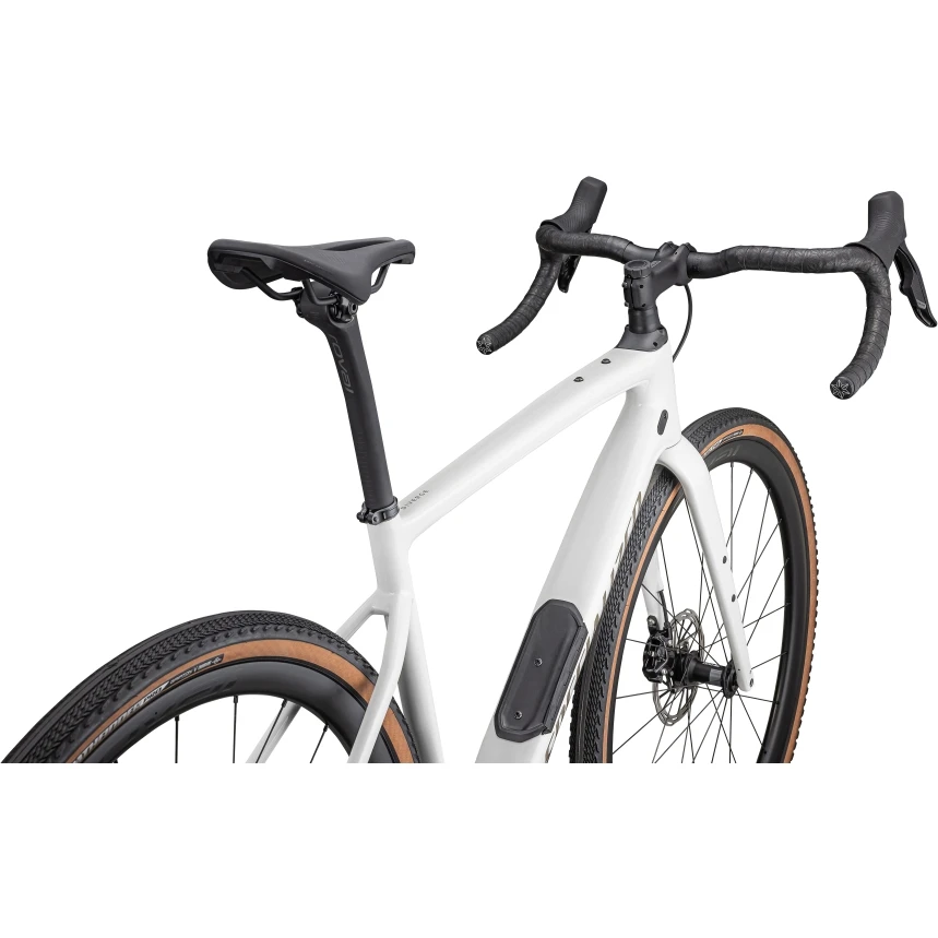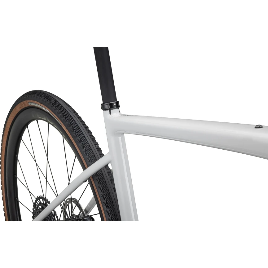Specialized a doté le Diverge de nombreux points de fixation, que l’on retrouve également sur la fourche et le tube supérieur. Ainsi, peu importe le temps que vous passerez sur la route, vous pourrez emmener votre équipement avec vous. Vous souhaitez rouler avec des pneus plus larges ? Le Diverge dispose d’une garde au sol de 47 mm avec des pneus 700C et de 2,1″ avec des roues 650b.